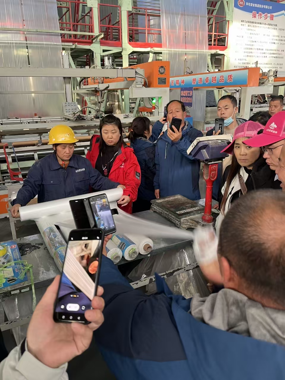 在集團(tuán)領(lǐng)導(dǎo)和公司銷售、技術(shù)人員的帶領(lǐng)下,考察團(tuán)參觀了功能棚膜車間、地膜車間、技術(shù)研發(fā)中心、展廳等處。科倫塑業(yè)先進(jìn)的集中棚膜供料設(shè)備、智能化地膜自動(dòng)卷取系統(tǒng)、一流的檢驗(yàn)檢測(cè)儀器受到廣大客商的高度關(guān)注和充分肯定。